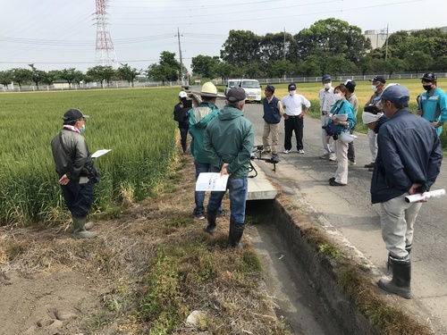 この時期は赤カビ病の防除時期で、多くのお客様からドローン実演の依頼をいただいております。